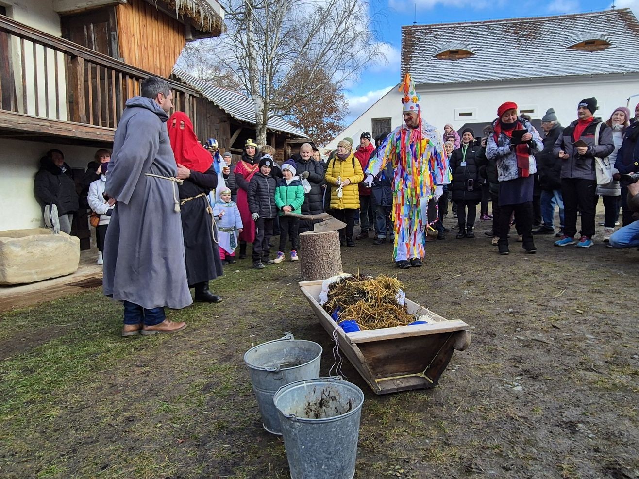 Průvod, v němž nechyběli ženich a nevěsta, smrtka, kat, soudce, medvěd či kominík, se kolem 14. hodiny vrátil na statek U Matoušů a tam program o hodinu později vyvrcholil pohřbem zhýralého Bakuse, kterému kat sťal hlavu a přítomní jej zasypali hnojem. „Symbolicky jsme se tak rozloučili s dobou hodování. Od Popeleční středy nastává období půstu, které trvá až do Velikonoc,“ vysvětlila vedoucí Muzea v přírodě Plzeň-Bolevec Mirka Kubatová Pitrová.