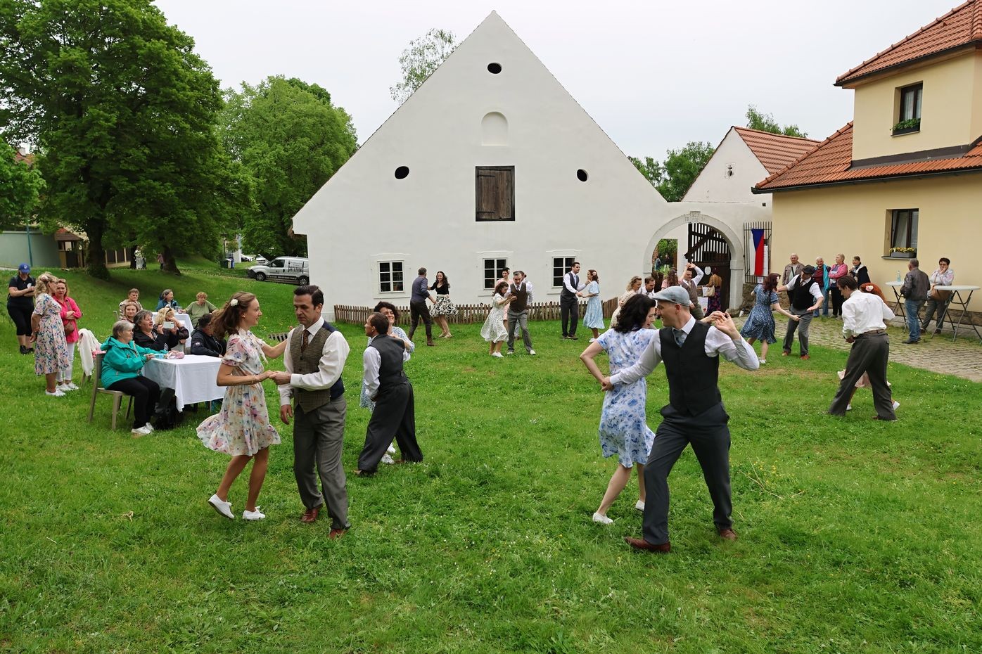 Akce tam odstartovala ve 14 hodin, kdy na náves přijela v režii Klubu historické a vojenské techniky menší kolona vozidel, která za války využívala československá armáda. Vojáci přivezli tanečníky z klubu Dance by Lion´s, kteří to rozbalili na swingové melodie kapely Zhirawski Memory Band, jež na návsi zahrála díky podpoře spolku Jazz bez hranic.